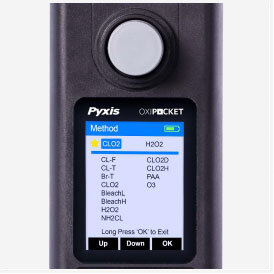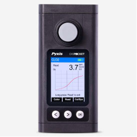 The SP-200 OXIPOCKET is a unique all-in-one pocket colorimeter. Specifically designed for measurement of all primary oxidizing biocides and disinfectants commonly used in the municipal, domestic and industrial markets. The SP-200 offers colorimetric testing for these oxidizing biocides and disinfectants as well as ammonia. The OXIPOCKET replaces the need for independent colorimeters & expensive multi-component colorimeters by using Pyxis Lab® as well as conventional reagents. This handheld also contains an integrated fluorometer enabling Direct-Read methods for both Chlorine Dioxide and Bleach Concentration in both low and high concentration ranges as mass/mass. A unique development that allows users to test direct sources samples for precise concentration without the need for any reagents. Wireless data log transfer, firmware updates and screen customization is available via the uPyxis® app.