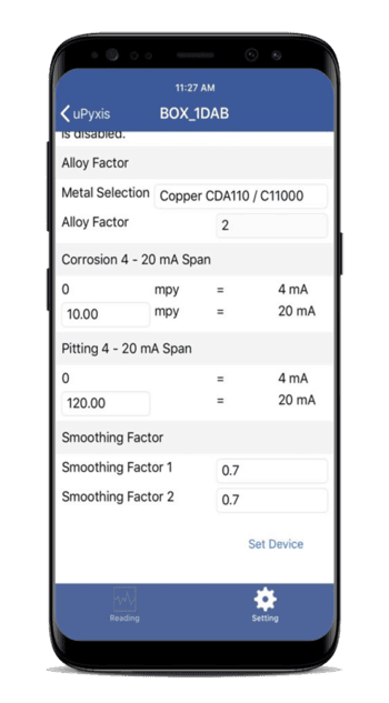 Measure for General and Localized Corrosion Rate based on System Metallurgy at a scale of 0.001–10MPY. Truly wireless, Bluetooth® enabled sensor that offers wireless monitoring, configuration & calibration via the uPyxis® app.